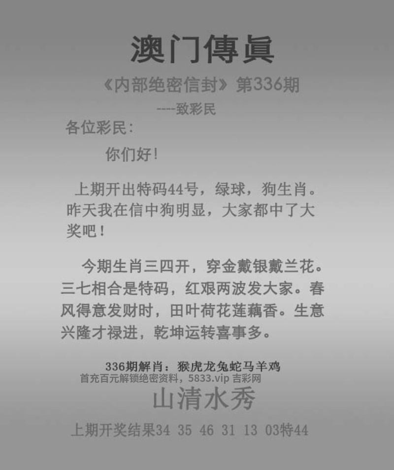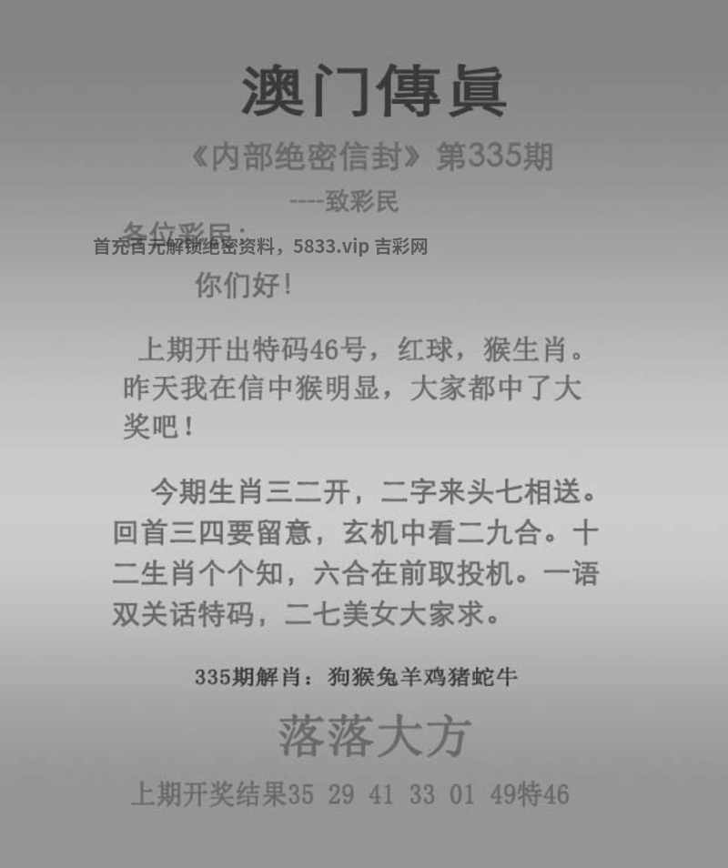 | 335期:★吉凶中特★【凶丑】开:狗44中 |